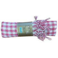 odel buldan pembe kare desenli piknik ortusu 100 pamuk 140x140 cm