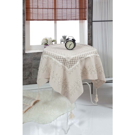 tulip orme masa ortusu 100x100 cm bej pembe