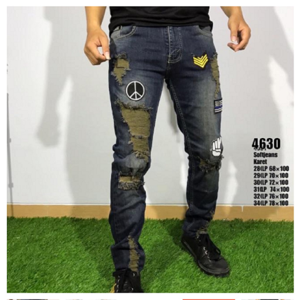 celana jeans pria bordir celana sobek pria keren