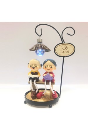 elba sevgiliye hediye isme ozel bankta oturan cift dekoratif masa lambasi