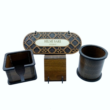 isme ozel ahsap lux masa ustu 4 lu ofis seti