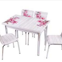 tekzen home rainbow hayal desenli buyuyen cam masa 4 sandalye set