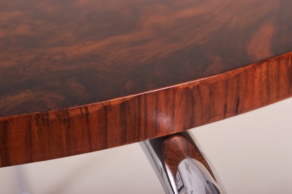 czech round oak chrome bauhaus table by mucke melder 1930s