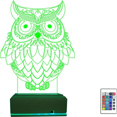 algelsin 3d 3 boyutlu ilizyon baykus tasarimli 16 renkli masa lambasi