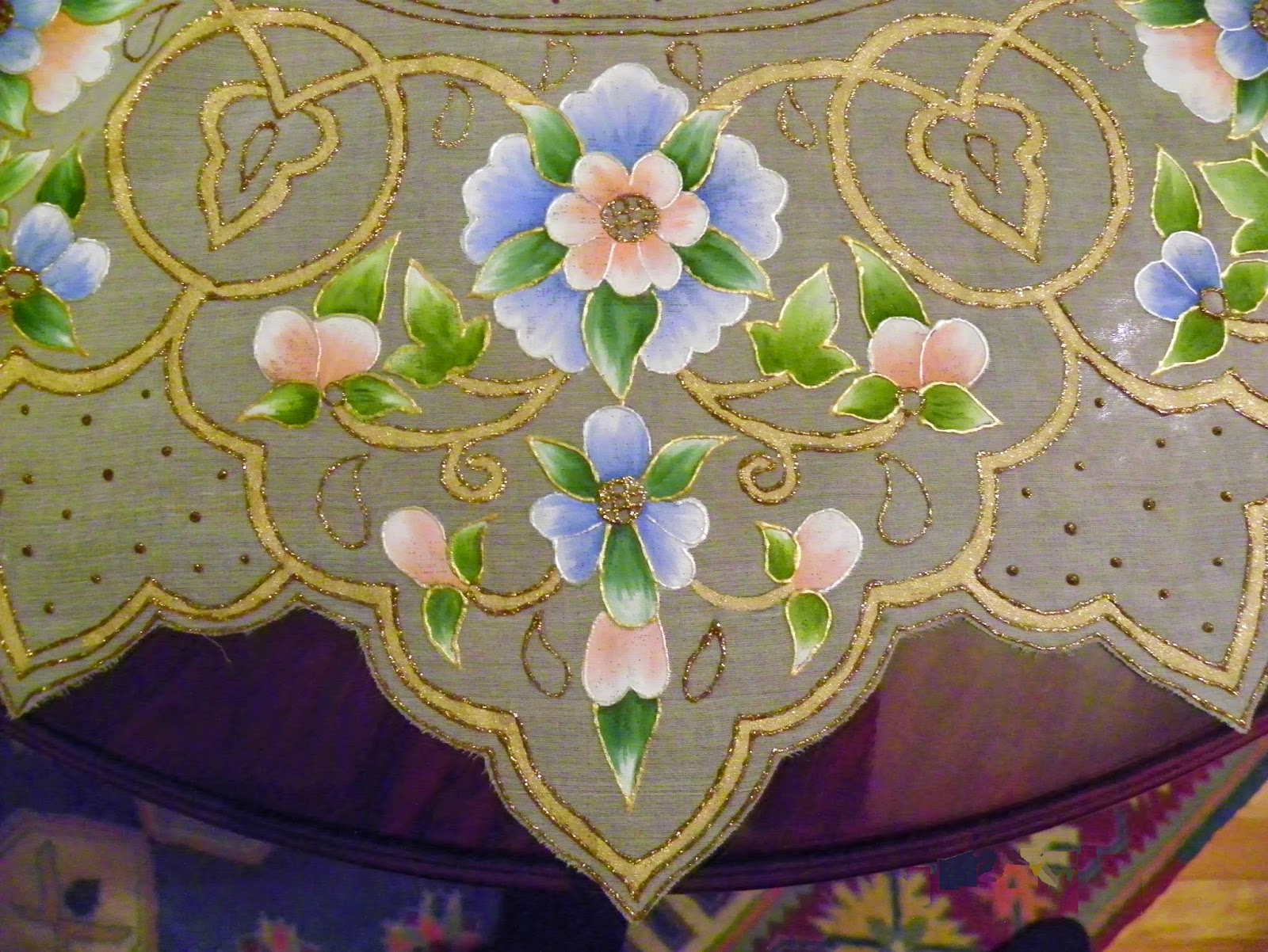 elde boyama masa ortusu once kadin