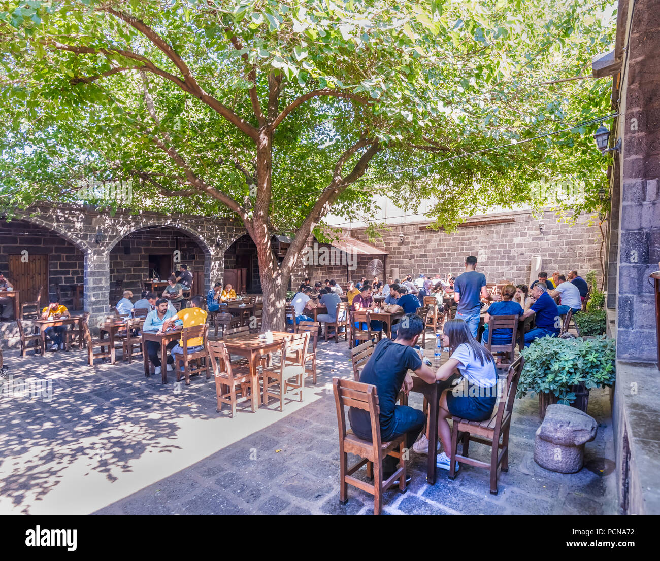 https www alamy com unidentified people sit courtyard of suluklu khana medieval inn used for cafes and small shops now in diyarbakirturkey16 july 2018 image214369318 html