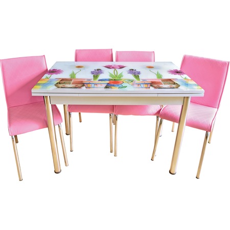 mutfak masa takimi cam masa 4 sandalye beyaz