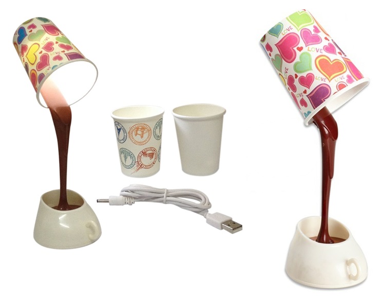 diy cup light dokulen kahve gorunumlu masa lambasi