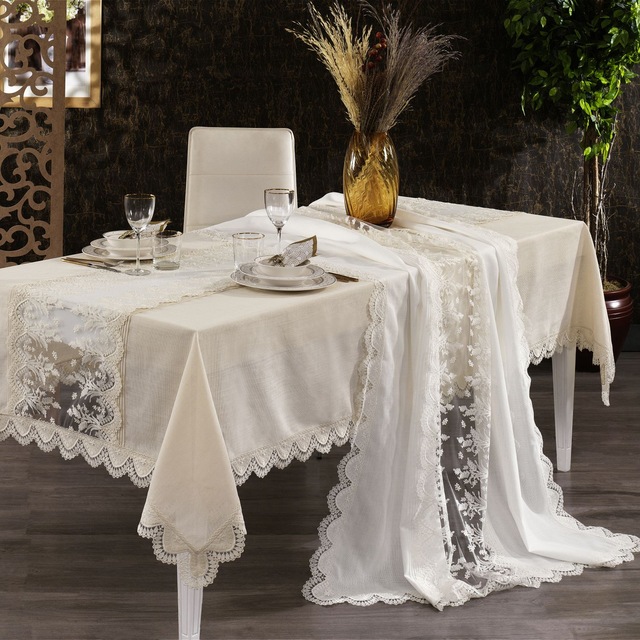 gloria dertsiz ozel dantelli masa ortusu krem renk