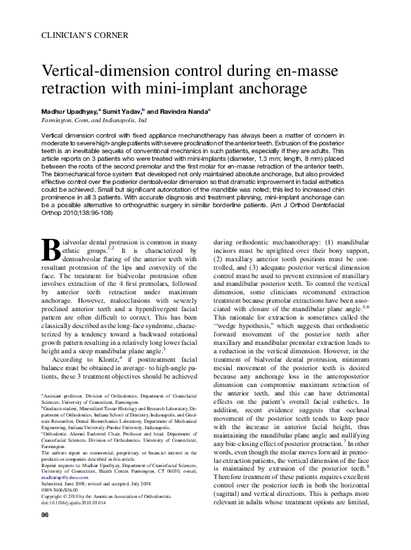 miniscrew supported en masse retraction