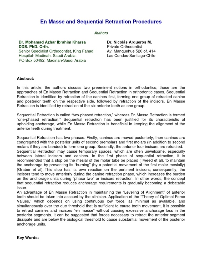 en masse retraction versus two step