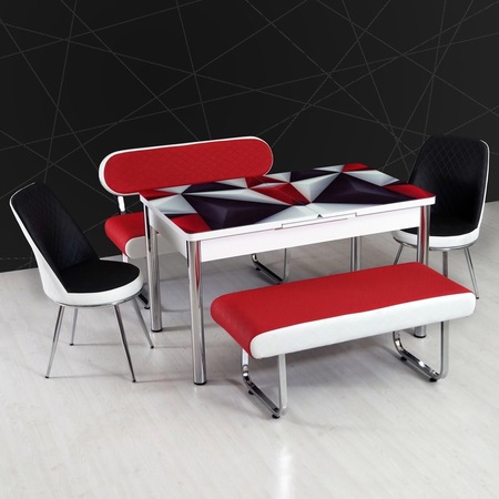 yeni evform vega bankli acilir masa takimi mutfak masasi yemek seti kirmizi cizgili