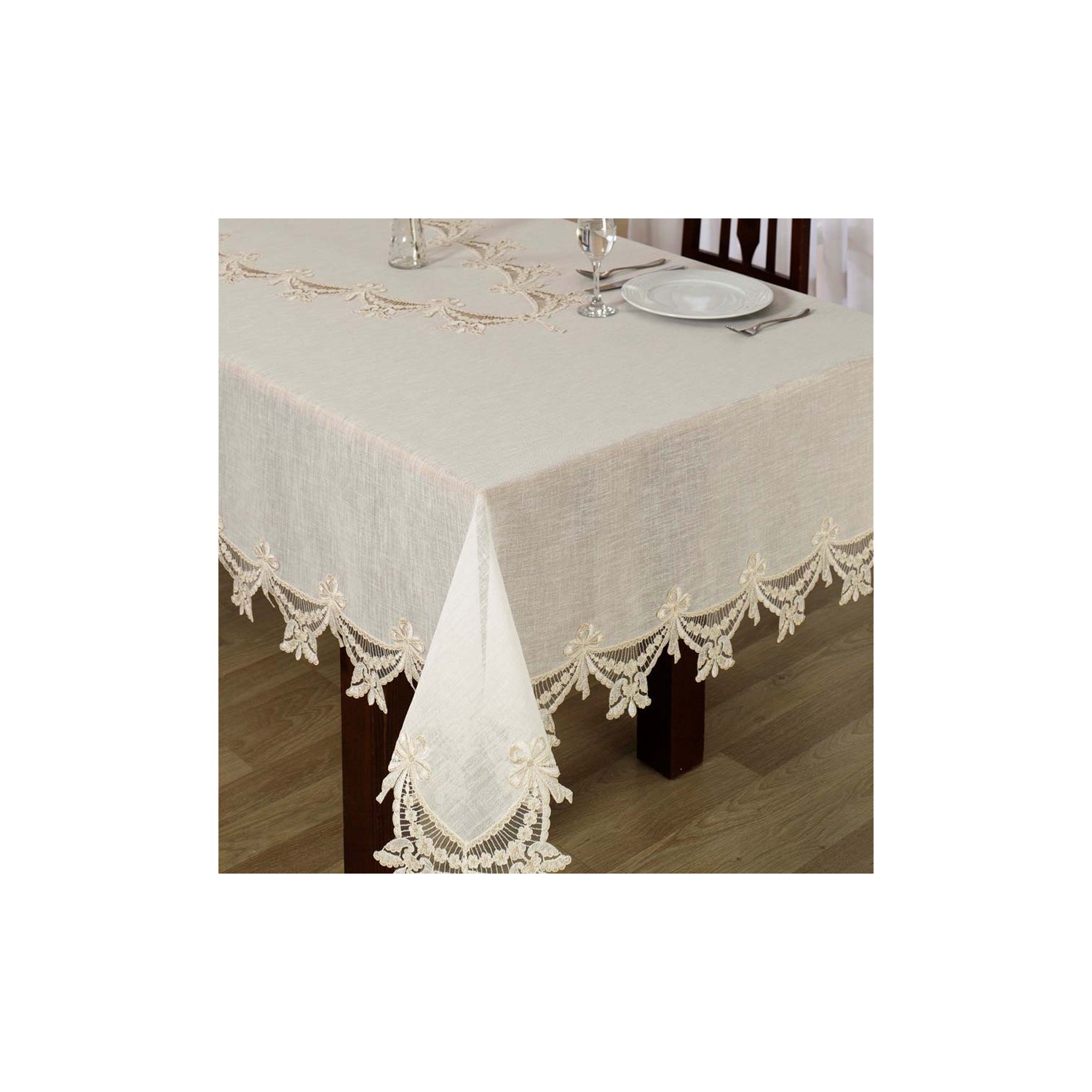 fiyonklu el yapimi dantelli jut runner ve 4 lu amerikan servis takimi arm 3134 beyaz