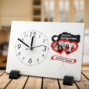 sevgililer gunu hediyesi resim baskili kalp tasarimli masa saati