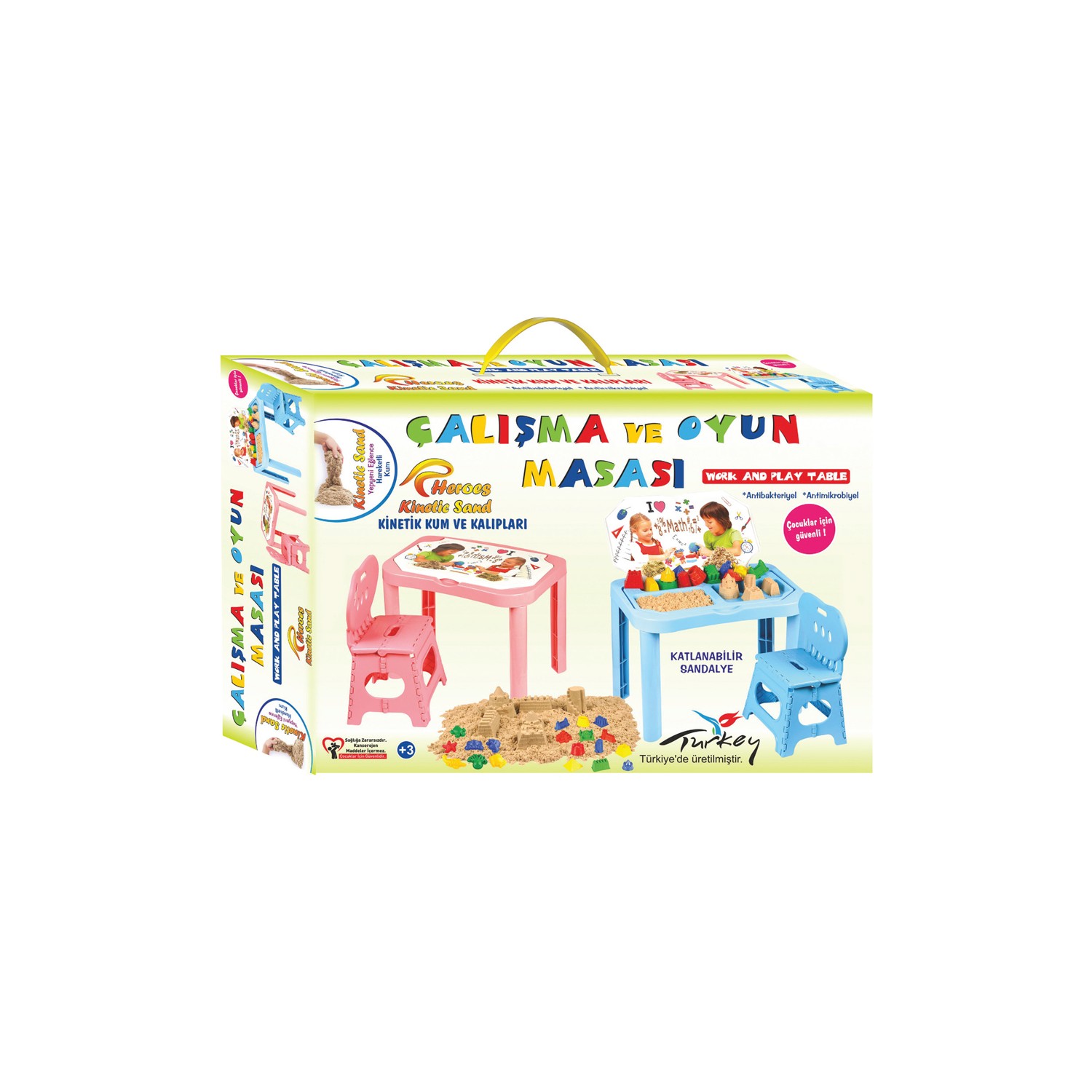 heroes kinetik kumlu oyun ve calisma masasi katlanabilir sandalyeli set mavi