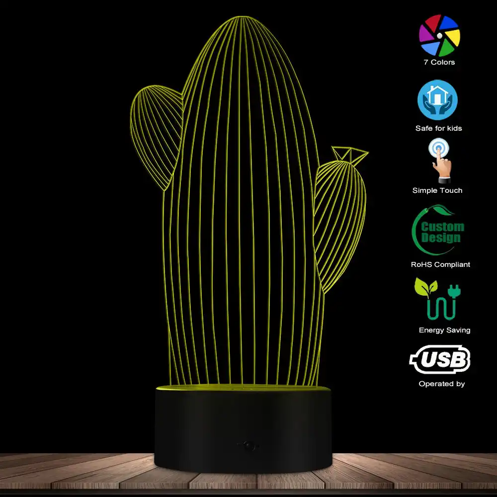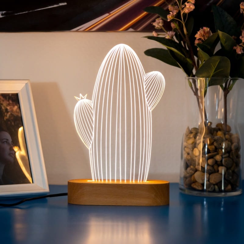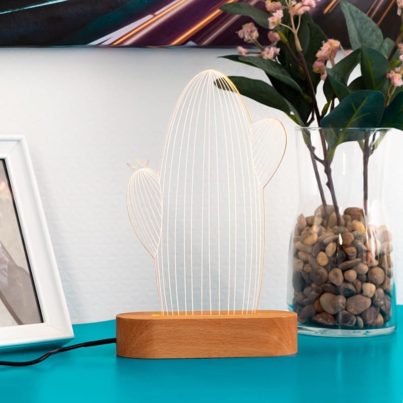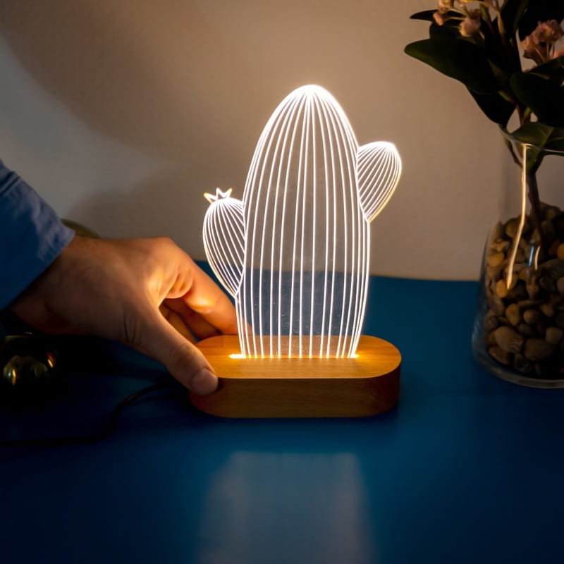 kaktus tasarimli 3d led lamba hediye sepeti