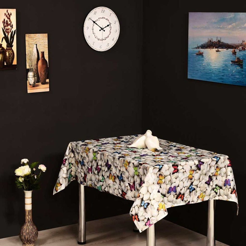 kelebek desenli dijital baskili 3d masa ortusu