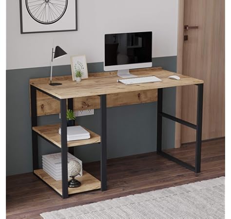 elfin bilge 4 rafli metal calisma masasi kitaplikli bilgisayar masa