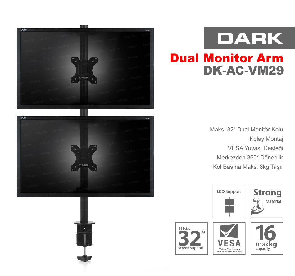 electroon 19 28 ciftli 360derece tv monitor masa aski aparati cift kollu