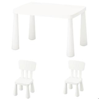 ikea mammut masa ve 2 adet sandalye cocuk beyaz