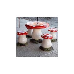 isikli dekoratif mantar bahce masasi takimi seti aksesuar taburel