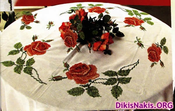 kanavice gul islemeli masa ortusu