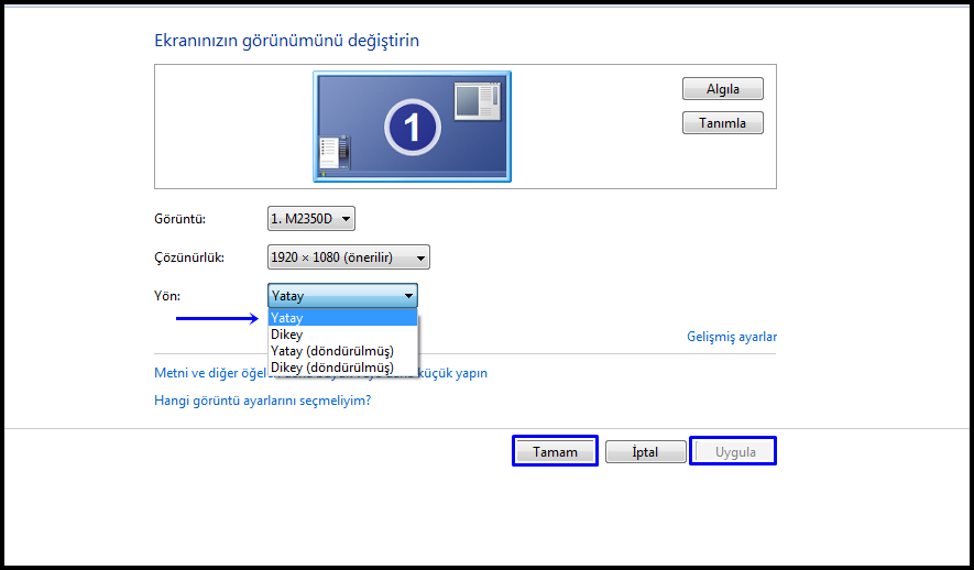 ekran yonunu ayarlamak ekraniniz