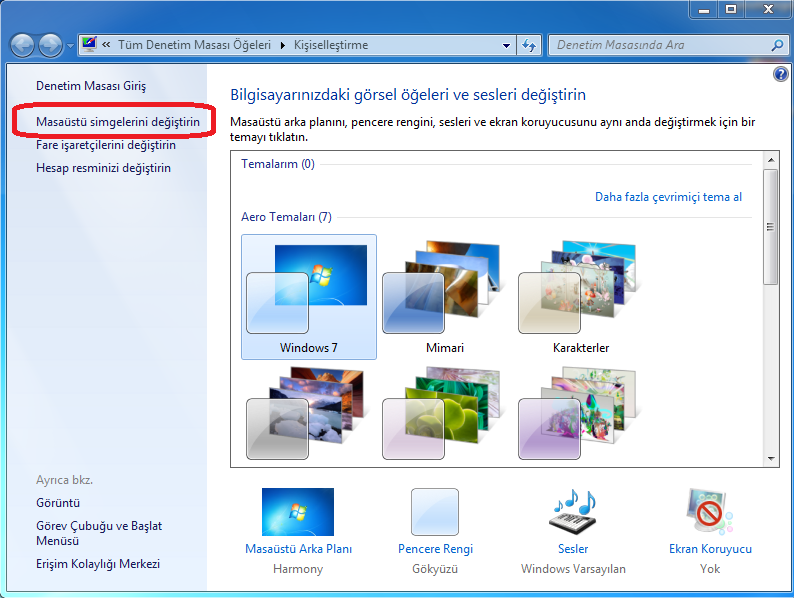 windows icin masaustu simgeleri nasil