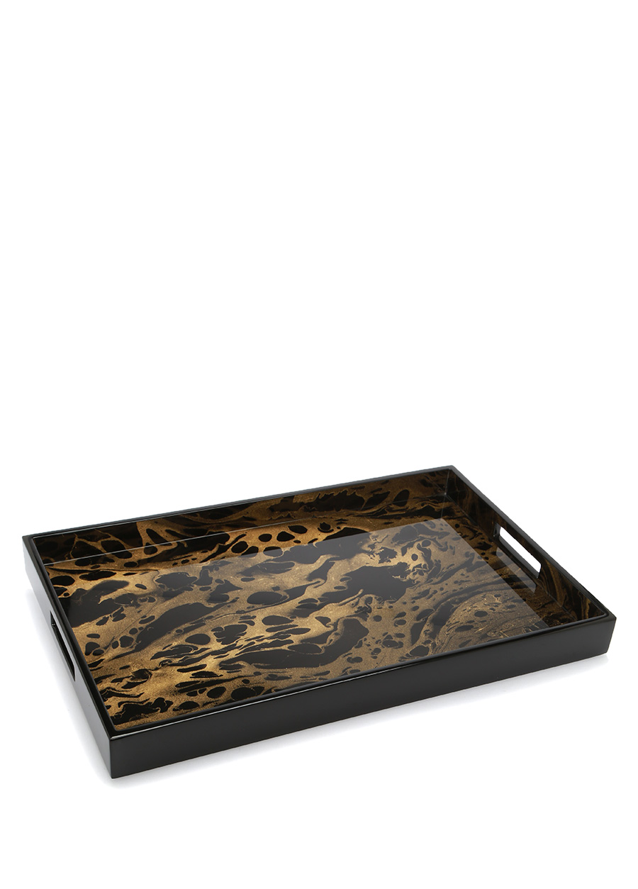 marble siyah dikdortgen formlu desenli tepsi