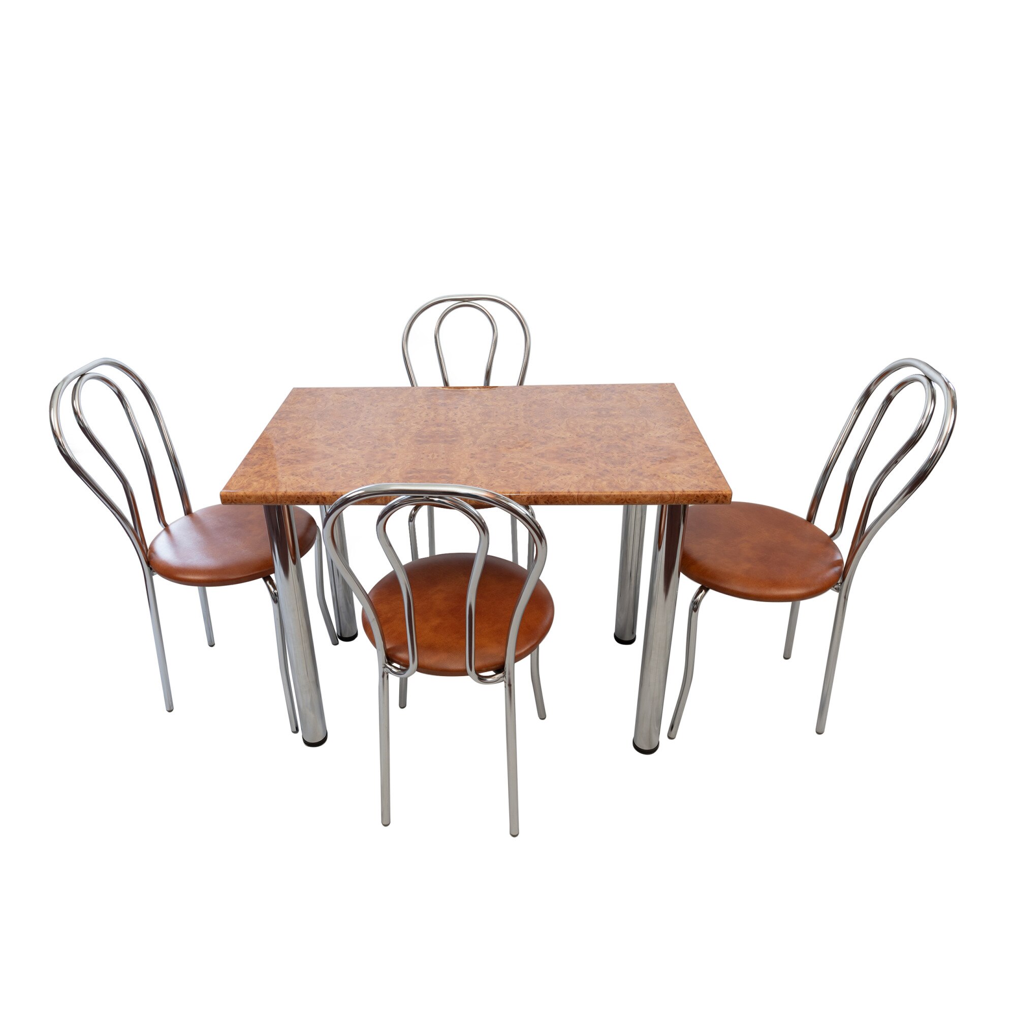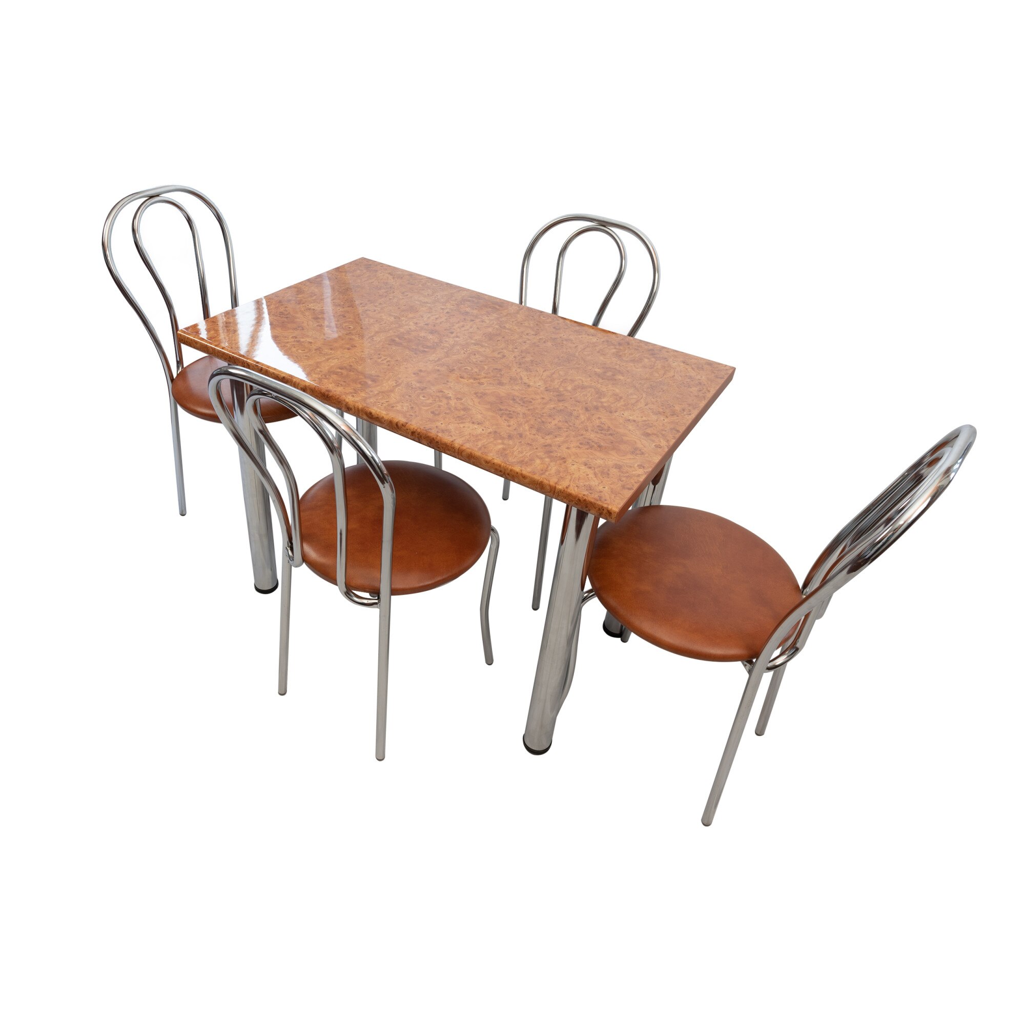 set masa de bucatarie denver blat termorezistent 100x60 cm radacina de nuc 4 scaune tulipan