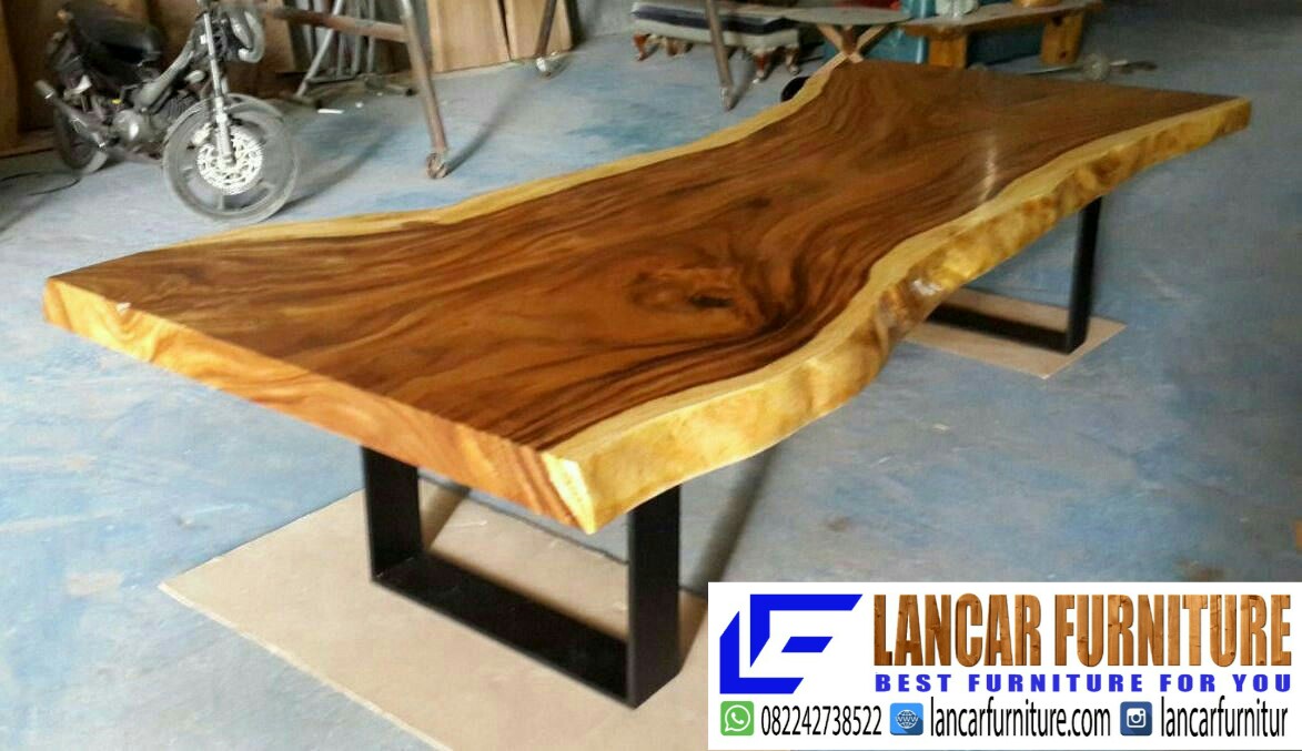 live edge suar wood dining table tripod iron leg mayasa gallery furniture jati dan meja trembesi
