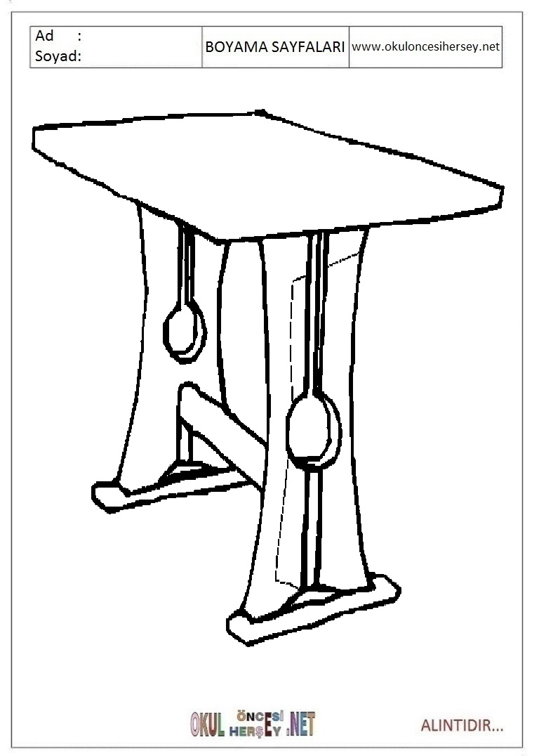 masa sandalye boyama sayfalari