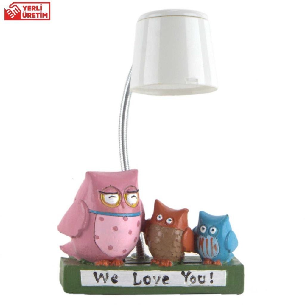 sevgili baykus ailesi mavi masa gece lambasi isikli biblo