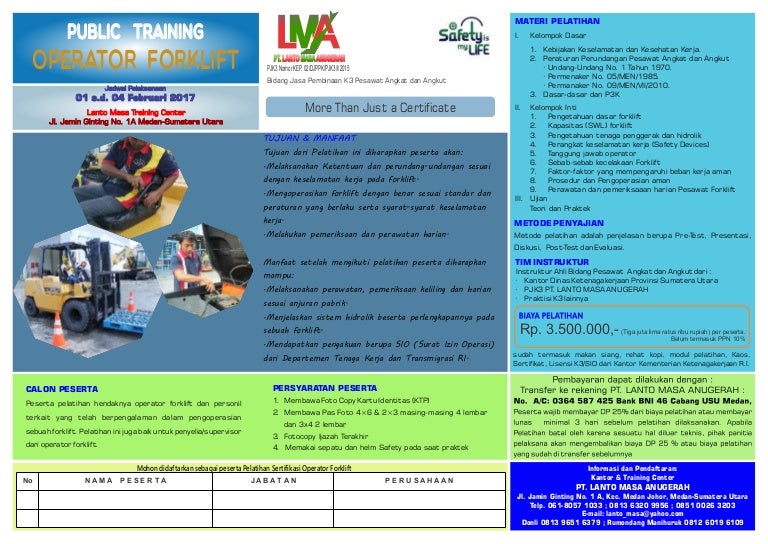 brosur public training operator forklift