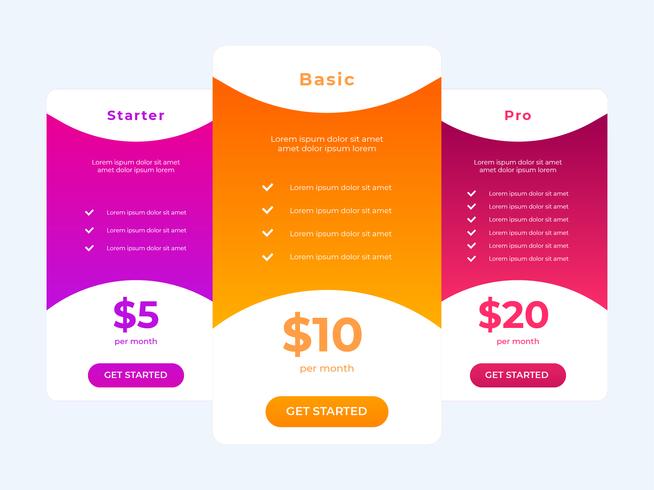 pricing table vector template
