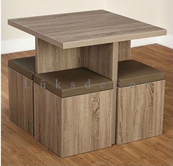 ahsap masa ve 4 adet tabure takimi