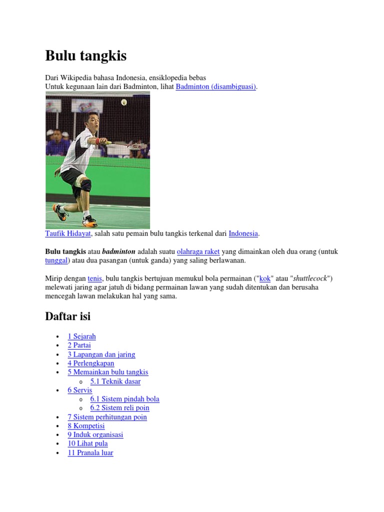 bulu tangkis daftar isi