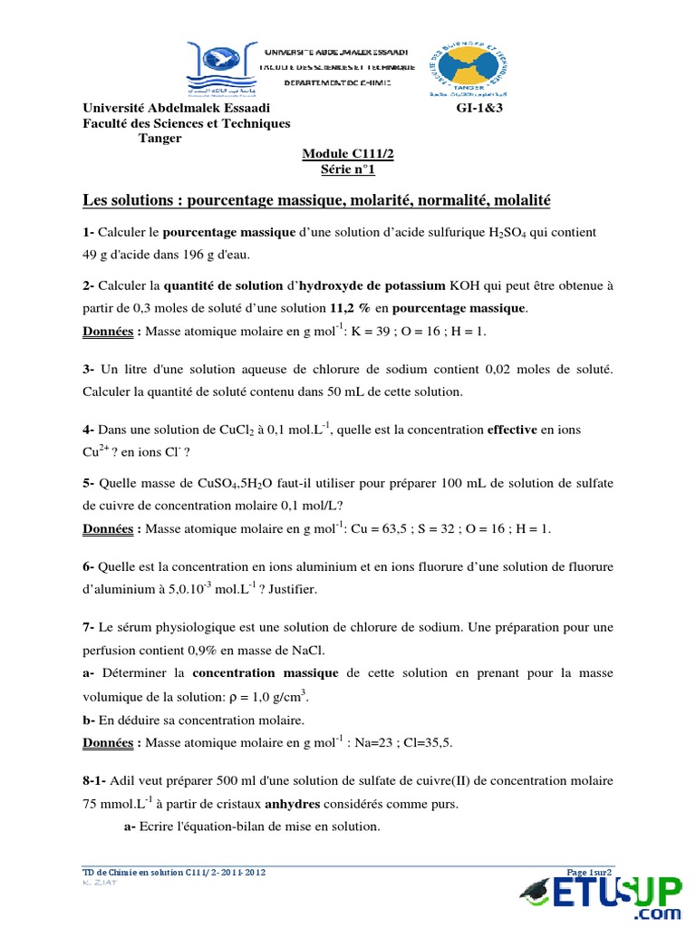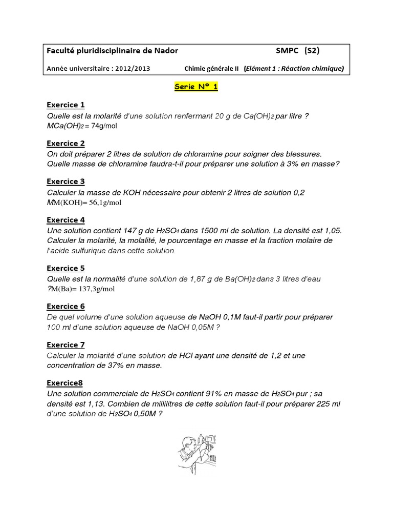 concentration molaire densite masse molaire d un solute