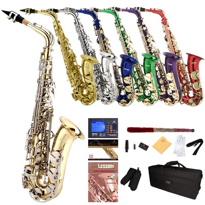 mendini by cecilio eb alto sax w tuner case mouthpiece 10 reeds pocketbook and 1 year warranty mas l gold lacquer e flat saxophone