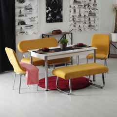 mutfak masa takimi renkli kumas acilir masa sandalye 6 sandalye