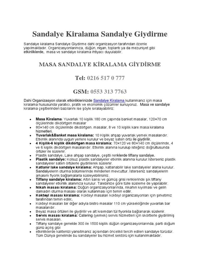 masa sandalye kiralama susleme tum