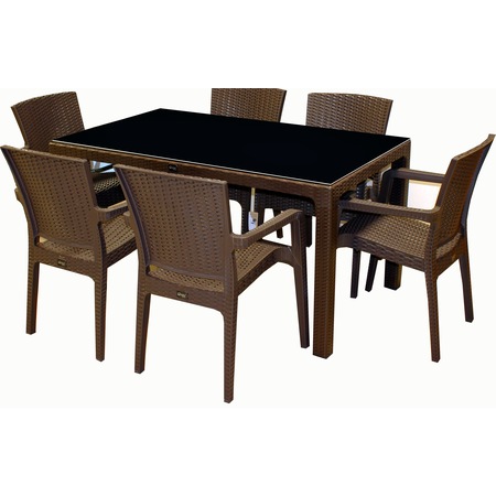 holiday rattan efektli camli masa takimi 6 kisilik kahverengi y572
