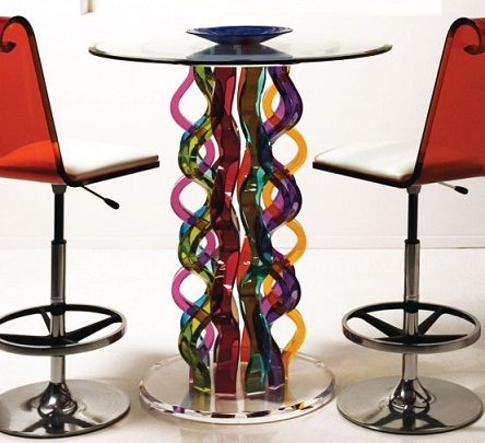 cam masalar ve renkli sandalyeler