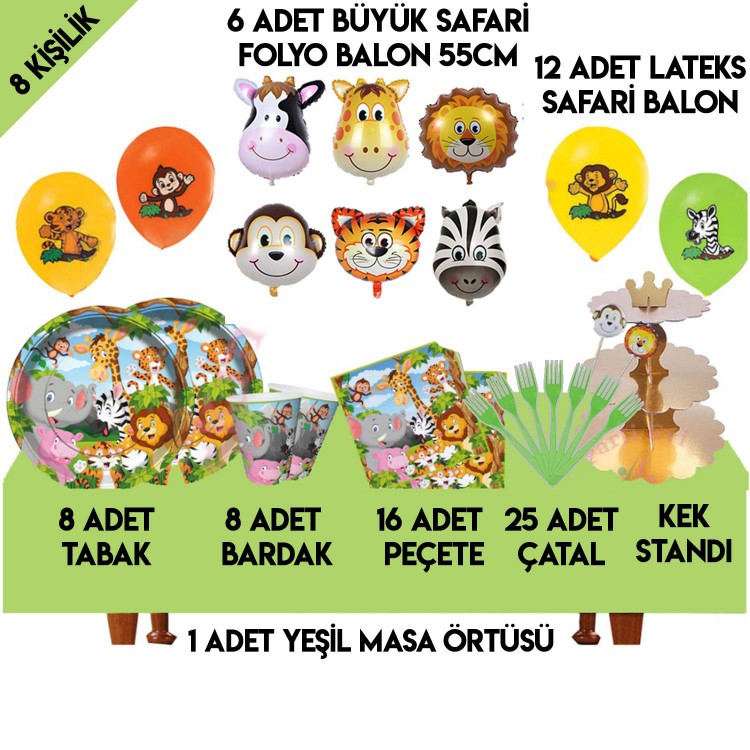 safari temali konsept parti seti 16 kisilik 115 parca