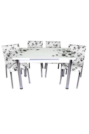mutfak masasi takimi cam siyah halka yan acilir masa 3 beyaz 3 siyah deri sandalye
