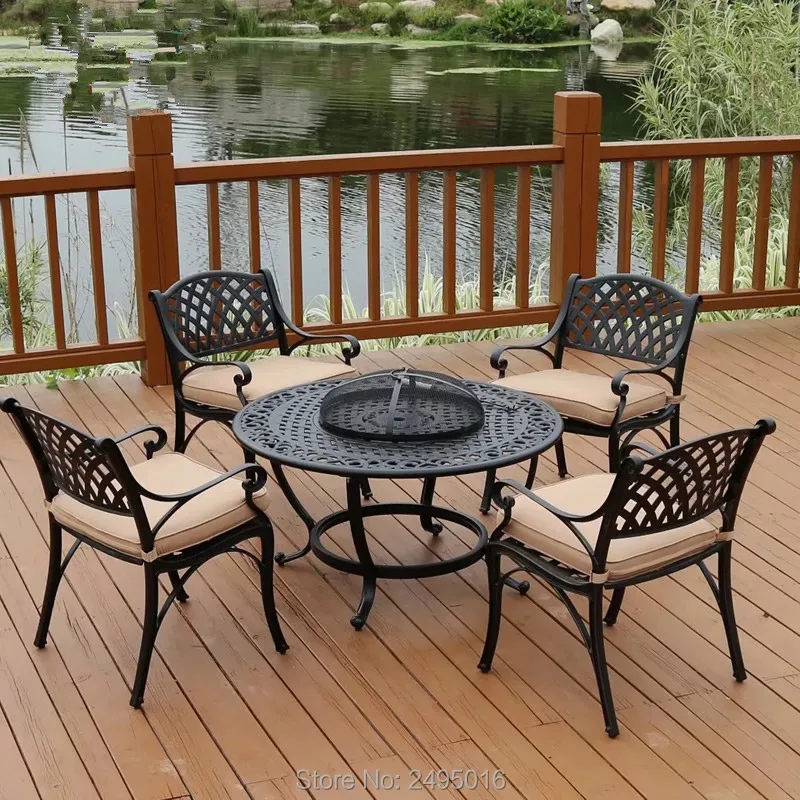 us 499 0 brulor bahce veranda yuvarlak masa mangal seti kati dokme aluminyum bitmis siyah dusuk arka kol 4 sandalye bahce setleri aliexpress