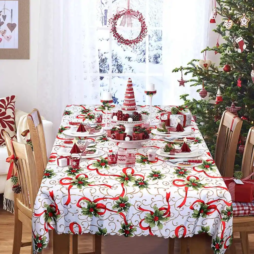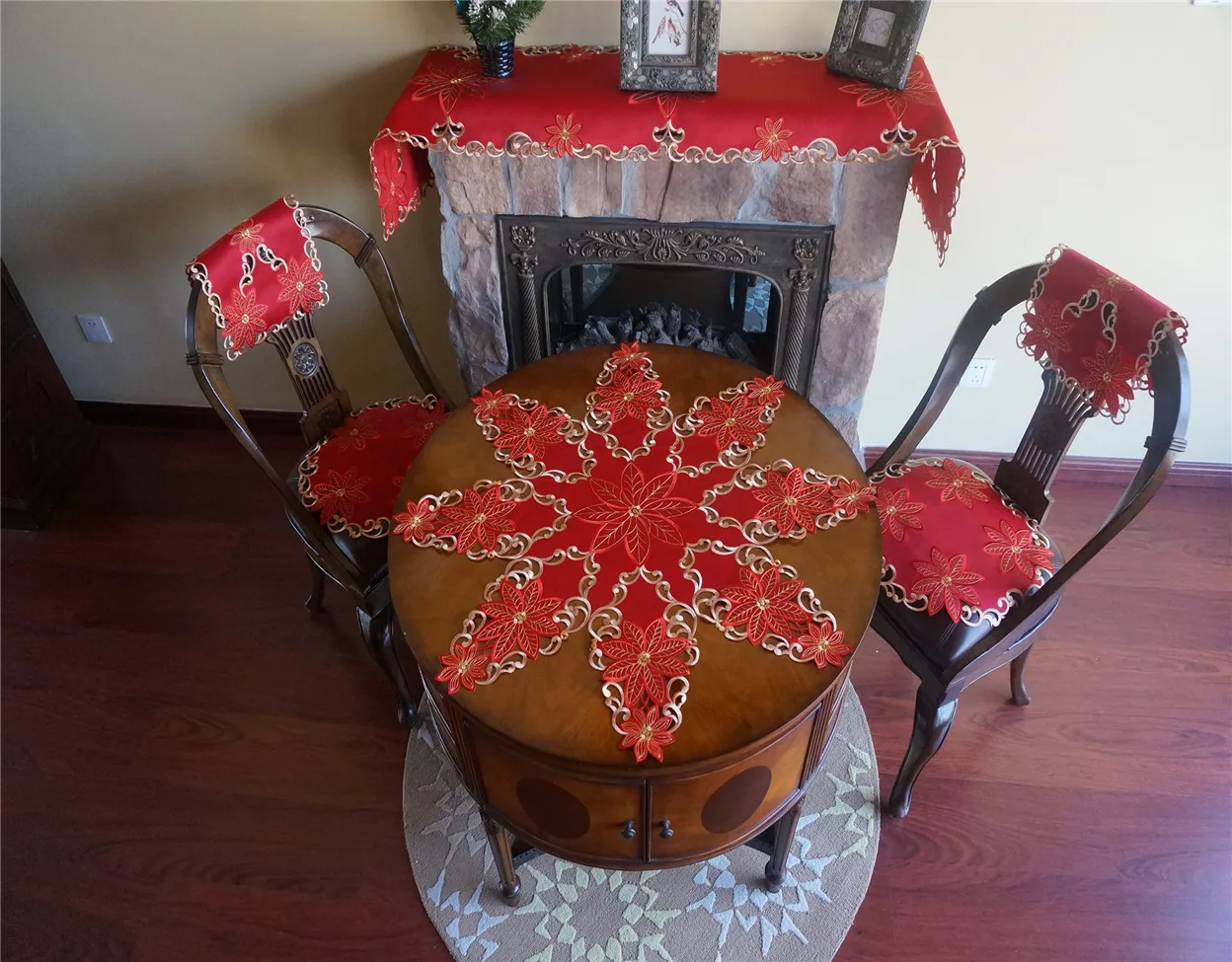 noel senlikli kirmizi masa ortusu dantel parti dugun masa bayragi ev dekorasyon
